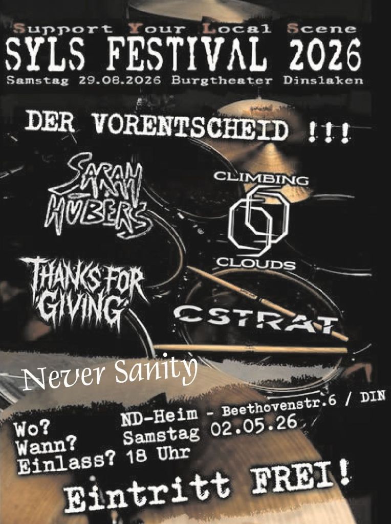Bands bewerbt euch für den Vorentscheid am 2 Mai im ND-Jugendzentrum. Ihr habt die Chance, beim SYLS mitzuspielen!
